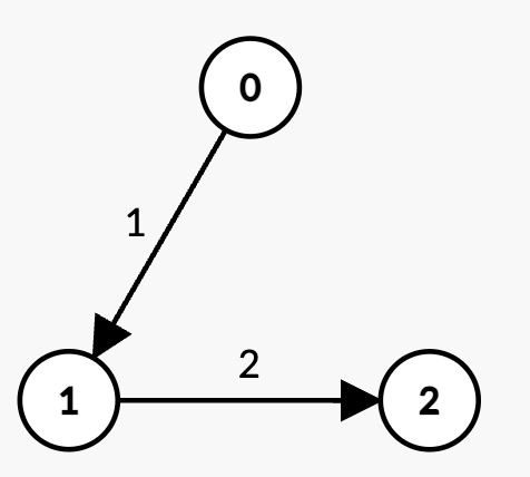 k = 2 edges is 0 -> 1 -> 2 with weight 1 + 2 = 3 < t.t is 3.Example 2: