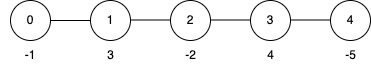 Input: edges = [[0,1],[1,2],[2,3],[3,4]], nums = [-1,3,-2,4,-5], k = 2
